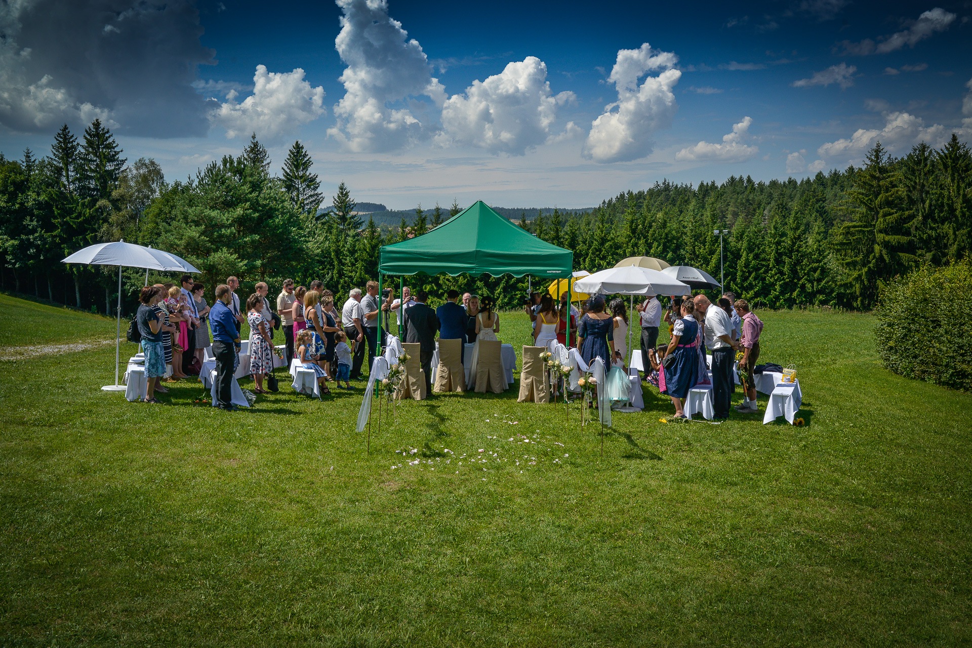 So begann ein herrlicher Sommertag im Juli beim getting ready der Braut und dem Bräutigam mit anschließendem Empfang der Gäste im Elternhaus. Am Weg zur traumhaften Location