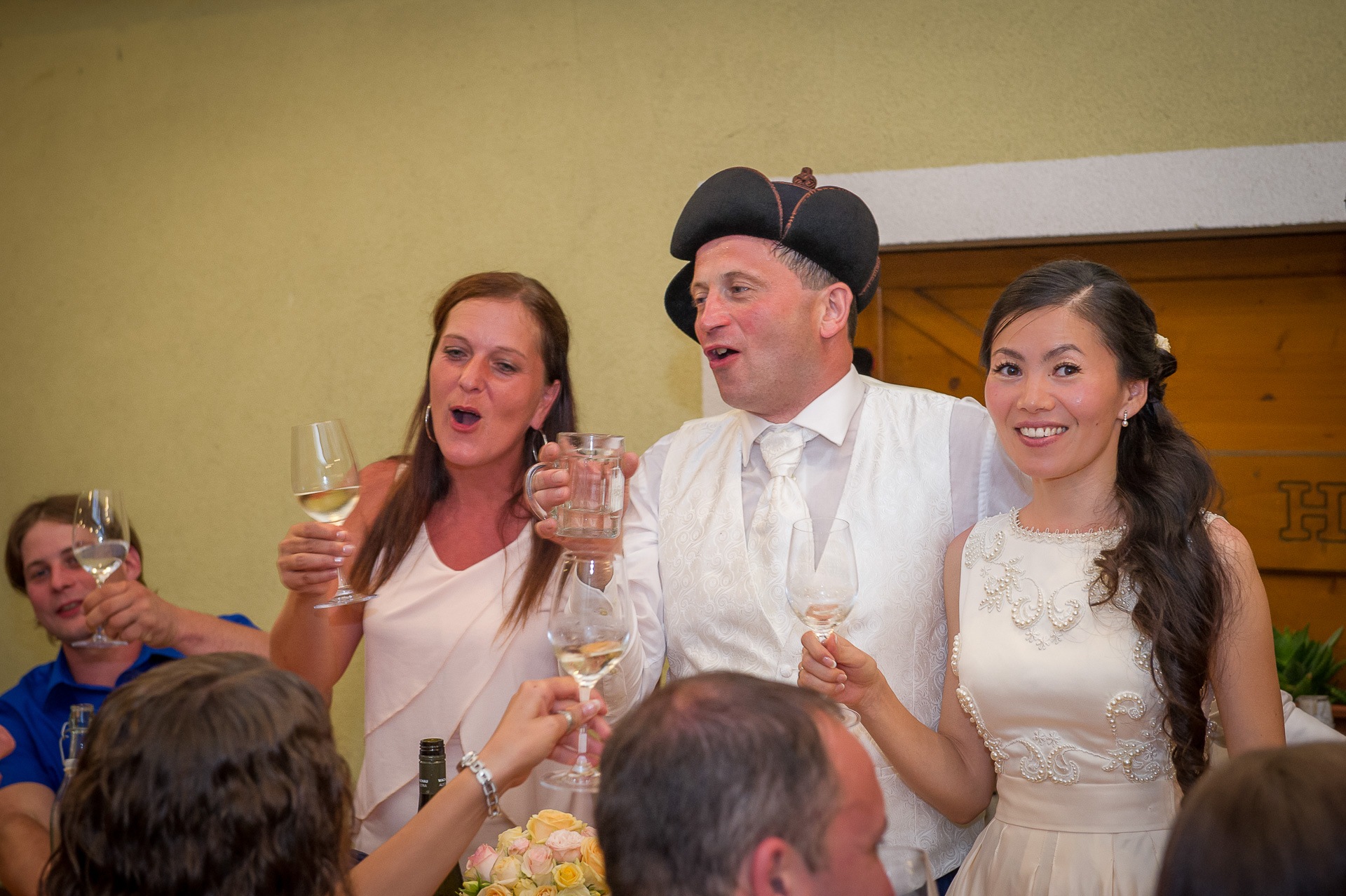 "Gasthaus Hobegger“ in Grafenschlag fortgesetzt, wo auch schon eine Blas-Tanzkapelle das Brautpaar in empfang nahm. Perfekt fügte sich die Location in die weiteren Festivitäten des Paares ein, mongolische Gebräuche vollzogen, gesungen und getanzt wurde.